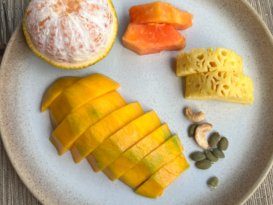 빌라는 사진이 많이 예쁘게 찍혔어요. 실제로 보면 낡은 티가 조금 나요. 침대는 베르사유에서나 보던 엄청 높은 침대가 있고 아주 안락해서 언제 잠들었는지도 모르게 꿀잠잤어요. 레이스 커튼이 달려있는 침대는 벌레를 막아줘요. 벌레를 막아준다는 말은.... 벌레가 있단 말입니다... 거실은 야외에 위치해있어요. 모기향을 피워줍니다. 정글 속 야외인만큼 개구리도 왔다갔다해요. 수영장은 작은데, 이 호텔 특징이 수영장이 진짜 깊어요. 1.56미터라 아이들이 쓰기엔 조금 무리가 있어요. 객실 수영장이 아닌 호텔 수영장은 1.56미터 1.03미터 2개가 있는데, 1.56미터가 확실히 깊어서 대부분 1.03미터에서 놀더라구요. 어매니티는 모두 다회용기로 제공되고 비누만 일회용이예요. 애프터 선젤과 입욕 소금이 준비되어있고 인센스 스틱도 있어요. 웰컴 과일과 compliment로 우유와 튀긴쌀과자와 칩이 있었어요.