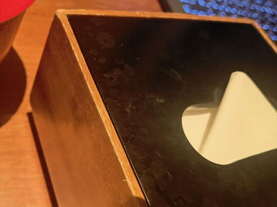 위생: 전반적으로 좋고 세부 사항에 약간의 문제가 있으며 (그림 1), 티슈 상자가 더럽고 보이지 않습니다.