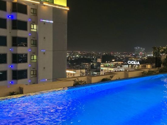 호텔 외관도 깨끗하고 내부 청결도 직원 친절함 모두 좋았습니다 꼭대기 수영장과 바도 매우 인상 깊었고 좋은경험이였습니다 고민하지말고 여기 가세요 또 오자마자 체크인할동안 마시라고 드링크와 물수건 주셨는데 매우 좋았습니다 웰컴드링크도 맛있었고 조식도 괜찮은편입니다
