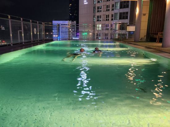 호텔의 루프탑 수영장 너무 좋았구요 수영장에서 경치도 최고였어요! 물도 따뜻했어요. 룸도 깨끗했습니다. 화장실도 매우 넓었는데 하나 아쉬운 점은 문이 방음이 잘 안 되서 모든 게 화장실 밖에서 들렸다는 점입니다. 그 외엔 정말 만족스럽습니다.