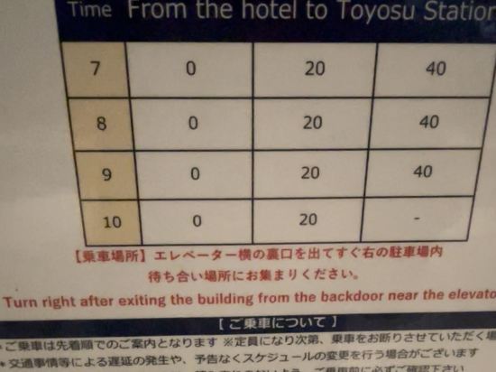 도요스역에서 호텔까지 셔틀이 운행하고 간혹 늦게 들어가게 되어서 걸어도 10분정도라 걸을만 합니다