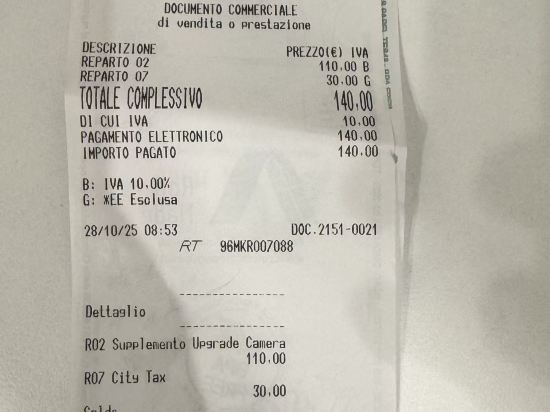 另外就是我朋友是夫妻,他們兩人入住,酒店還額外加收每晚55歐元的費用,我極其不能理解,這種説明不提前在下單時備註,而是在你入住後告知,明顯就是坑人