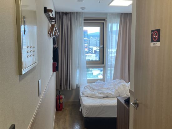 장점 : 좁은게 그렇게 불편하지 않았습니다. 깨끗했구요. 가격과 위치 아주 훌륭했습니다. 올레시장 도보 3분컷이라는게 여행내내 아주 편리했습니다. 아침식사 맛있었습니다. 정가 다내고 먹으라면 글쎄...하겠지만, 트립닷컴에 특가로 붙는걸 골랐더니 아주 만족스러웠습니다. 주차 기계식이지만 불편하지 않았습니다. 그리고 코너뷰 객실이 구조상 복도 끝쪽에 있다보니 주변 소음에 다른방보다 유리했습니다.