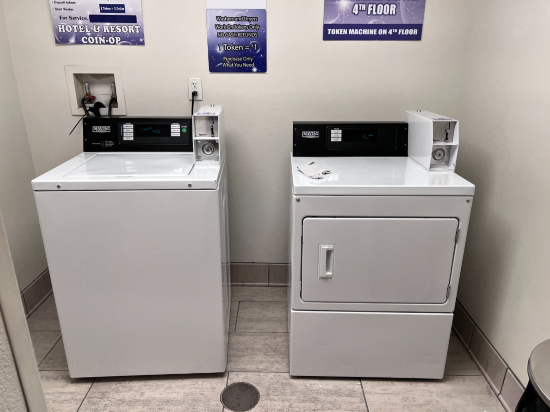세탁실은 윙 타워에 위치하고 있으며 토큰 교환이 필요하므로 다소 불편합니다. 아침 식사 선택은 좋고 서빙 시간은 길지만 뜨거운 음식에 대한 옵션이 더 있으면 더 좋을 것입니다.