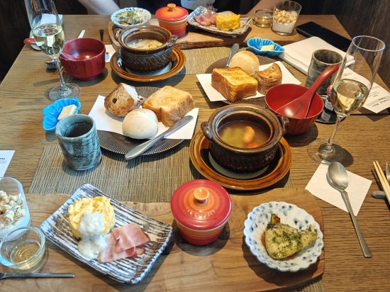저녁 식사는 훌륭하지만 바람이 말한 것만큼 놀랍지 않습니다. 우리는 6 명으로 구성된 그룹으로 4 명 테이블에 배치되어 빡빡하게 먹었습니다. 요청 후 아침 식사는 4 + 2 좌석으로 준비되었으며 약간 느슨했습니다.