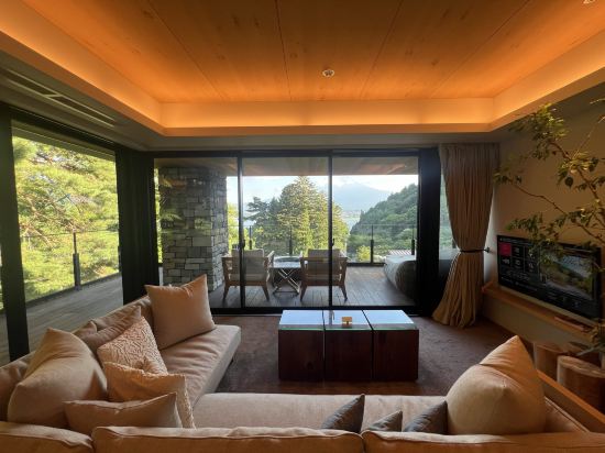 이 호텔은 놀라움으로 가득 차 있습니다. 나는 많은 통나무 스타일을 좋아합니다. 고급 감각이 가득합니다. 풍부한 식사는 좋은 술과 함께 제공됩니다. 방은 충분히 크고 개인 수프가 있습니다. 서비스는 매우 좋고 바 바텐더는 온라인입니다. 가장 좋은 점은 후지산을 바라보며 아침과 수프를 먹는 것입니다.