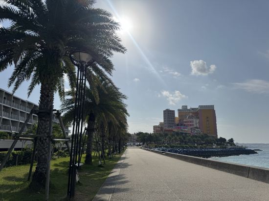 나하 공항에서 택시로 약 1시간 정도 걸려 도착했습니다.