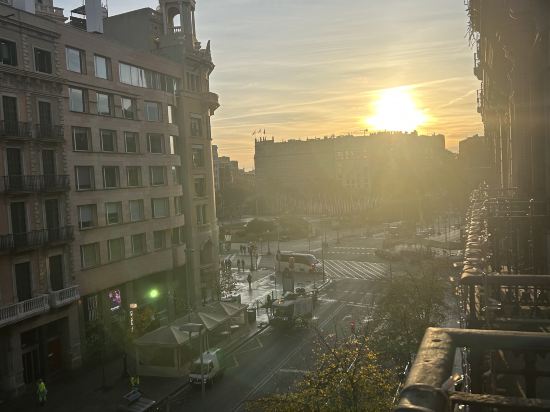 酒店位置優越,交通便利。機場大巴直達,地鐵公交僅幾步之遙。北邊步行至巴特羅之家、米拉之家,南邊是加泰羅尼亞廣場,步行可前往哥特區大教堂、親吻牆、畢加索博物館、波蓋利亞市場、哥倫布紀念碑等景點。門口餐廳多,就餐方便。房間不大,但乾淨整潔舒適。有小冰箱。第一天送了巧克力和soda水。每天有免費的瓶裝水。衞生間大。有浴袍、拖鞋。房間暖氣温度合適。房間內有一種淡淡的香味,很喜歡。房間和衞生間內照明充足。雖然臨街,但隔音效果較好。每天清晨推開陽台門,站在小陽台上看日出,開啟美好的一天。早餐不錯。前台和餐廳工作人員熱情禮貌。大廳和餐廳裝修風格時尚別緻。