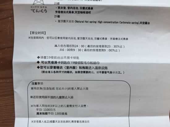 호텔 최상층의 온천은 회원제이며, 투숙객은 객실 카드를 무료로 사용할 수 있으며, 온천 면적이 넓고, 입욕 장소가 많으며, 시설이 충분합니다.