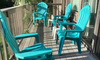 GT resort offers shuttle service from the condo to the resort, Turtle Creek Casino and Cherry Capital Airport.This condo has 2-bedrooms and 2-full bathrooms. Unwind outdoors on the oversized private deck watching the sun come up with a cup of morning coffee or a favorite beverage overlooking the picturesque Spruce Run Golf Course. Relax indoors with a toasty wood fire, open living room with ample seating, spacious windows, Roku T.V. vaulted ceilings, moveable sectional couch to add additional sleeping, elegant master bedroom with private entrance to deck, dining table for 6, fully equipped kitchen, coffee/tea area and hard wood floors. The loft and stairs is carpeted with a queen bed, full bathroom, and pull out couch.