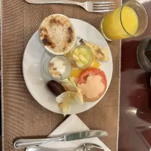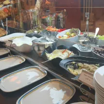 아침 식사는 훌륭했습니다! 그것은 따뜻한 음식과 차가운 음식 뷔페로 구성되었습니다. 뜨거운 음료를 보충하기 위해 돌아오는 조수들과 함께 잘 조직되어 있습니다.