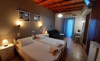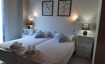 Excellent position,left side of a bay ,aside from the harbor crowd. Nice building surrounded with exotic trees . Comfortable bed and beautiful room with balcony. Restaurant across the road - 4 steps . Excellent breakfast ! Fresh orange juice,tea,coffee. Eggs,toasted bread, tomatoes… Fruit salad with yogurt and honey. Muffins,donuts…. Excellent fresh juice and natural lemonade Beach under the restaurant,2 steps With beds and umbrellas. Very polite owners of great help for each information. So kind and friendly people always smiling - good atmosphere. The room,bathroom are cleaned daily New towel and bed sheets regularly Everything excellent!!!