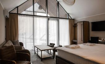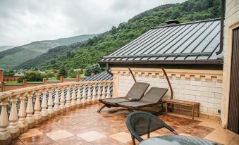 Хорошее место в горах, очень комфортные домики, вкусный ресторан с национальной кухней. Детская площадка давно не ремонтировалась, но наверное в сезон она в порядке. Есть сауна и маленький бассейн - дети довольны. Рядом монастырь. До достопримечательностей и на экскурсии только на машине.