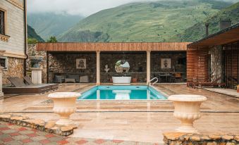 Никогда не приезжайте сюда. Этот отель не стоит и 10% от их прайса. Сервис отсутствует. Руководства нет. Из сотрудников только охранник , официант и психически неуравновешенное существо - адмиристратор Залина. Территория большая, но ваши чемоданы с вещами вам придётся нести самим, везти их не получится, потому что вся территория отеля уложена плитами с огромными щелями. Прилетели ночью, предварительно проплатив день раньше. Нас не встретили. На сервис не надейтесь. На ресепшене никогда никого нет. По приезду еле дозвонились до Залины. Спустилась заспанная и злая ( видимо разбудили) . Отдав ключи, рукой указала направление нашего домика. Вещи пришлось тащить в гору самим. В номере не было включено отопление. Нашли стекла на полу, рой мух и живых и дохлых. Погода была холодная. Ниже 0. На просьбу принести одеяло, Залина ответила- "у вас чайник есть в номере. Согрейте его и дайте ребёнку горячую воду.." Еда в ресторане с завышенным ценником, разогретая, не вкусная. При попытке выяснить ситуацию с битым стеклом и мухами в номере получили негатив, хамство и истерику от Залины, со словами -"ВЫ ТУТ В ГОСТЯХ. ВСЁ ВАМ НЕ ТАК и т.д" Очень неприятный осадок от посещения данного места. Много путешествуем, но с таким хамством и тупостью столкнулись впервые. ВСЕ НЕГАТИВНЫЕОТЗЫВЫ О НИХ НЕ ПРЕУВЕЛИЧЕНЫ. Так и есть. Это позор Осетии.