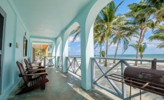 Escape to this cool house in picturesque San Pedro, Ambergris Caye Belize. This enchanting property features 3 serene bedrooms with queen beds, 2 bathrooms with showers and one jetted bathtub, and additional living spaces with cozy sofa beds and futons. Guests have choices between three verandas to relax and enjoy the views of the amazing Caribbean Sea and Barrier Reef.