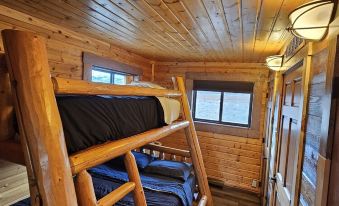 The ladder accessed loft area above the kitchen and bathroom sleeps 4 with a queen bed and two twin xl beds. There is also a stunning burnt wood slab desk area if you need to get some work done. We do have high speed wireless internet available.