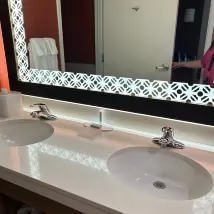 방금 디즈니랜드에서 돌아왔는데, 제 가족은 제가 이 호텔을 선택해서 기뻤습니다. 퀸사이즈 침대 2개 + 이층 침대가 있는 객실은 깨끗하고 넓었고, 벤치 눅/식탁과 더블 세면대가 마음에 들었습니다. 가족이 편안하게 지낼 수 있도록 잘 디자인되어 있었습니다. 제 딸이 여행 내내 가장 좋아했던 부분은 호텔의 워터파크였습니다(팁: 사전에 시간대를 예약해야 하지만 예약 가능 여부에 문제가 없었습니다). 디즈니에서 불꽃놀이를 하는 밤에는 풀 데크에서 좋은 전망을 볼 수 있습니다. -우리가 만난 모든 직원은 친절하고 예의 바르셨습니다. -모든 것이 깨끗했습니다. 디즈니랜드 공원 입구까지 도보로 10분 거리였습니다. 사람들이 같은 방향으로 꾸준히 모여서 그렇게 오래 걸리지 않은 것 같았습니다. 아침 식사는 포함되어 있지 않지만, 아침에는 아침 샌드위치와 팬케이크를 제공하는 1층에 카페가 있습니다. 유일한 단점은 건물 우리 쪽에서 고속도로 소음이 약간 들렸다는 것입니다. 낮에는 귀찮지 않지만 밤에는 더 눈에 띄었습니다. 가족이 많아서 가끔 이웃의 소음이 들릴 수 있습니다. 디즈니랜드를 방문한다면 꼭 추천하고 싶은 곳입니다.