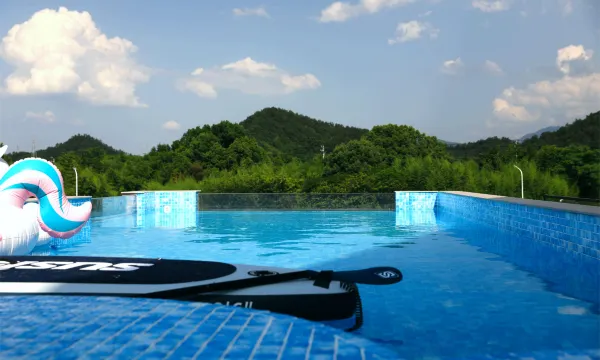 這邊地理位置很好,離龍鱗壩溯溪3分鐘車程,山海計劃天目溪谷越野也在邊上,老闆人很好,有求必應,借漿板給我們去溯溪,民宿就可以訂餐,也可以去鎮上吃,民宿負一樓有桌球麻將機ktv,小朋友玩的很開心,就是泳池的水不算很乾凈,拍拍照還可以