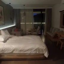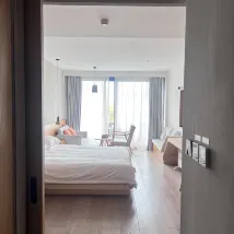 객실이 넓고 바닥난방이 되어있어 레이아웃이 매우 패셔너블하고 사장님이 매우 열정적입니다. 발코니 문을 열면 바깥 풍경이 일류이고 넓은 수영장과 행잉 의자가 있습니다. 스카이시티에서 매우 아름다운