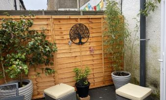 The front garden is enclosed and has seats and benches for sitting at the garden is situated in front of the house