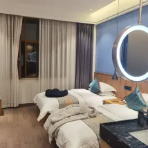 호텔은 비교적 새것이고, 시설은 예약 소개에 있는 사진과 동일합니다. 객실에는 바닥 난방과 전기 담요가 있어서 매우 편안하게 잠을 잘 수 있습니다. 방도 꽤 독특합니다. 다만 화장실이 조금 작긴 하지만, 똑똑한 화장실이고 따뜻하고 편안해서 앉기에 좋습니다.