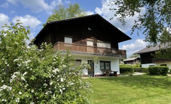 Child friendly holiday village "Am Hohen Bogen", 5 m a.s.l.. In the district of Kummersdorf, outside the resort, 3 km from the centre of Arrach, on a slope, traffic calmed area, 300 m from the edge of the forest, 100 m from the lake, 9 km from the skiing area. For shared use: volleyball, children's playground (slide, swing, sandbox). In the complex: table tennis (extra). Central heating system. Parking at the house. Shop 3 km, grocery 3 km, supermarket 3 km, restaurant 3 km, bakery 3 km, bus stop "Großmühle Abzw. Hohenwarth" 650 m, railway station "Hohenwarth" 1.5 km, grass beach "Seepark Arrach" 5 km, outdoor swimming pool 10 km, thermal baths 10 km, bathing lake "Seepark Arrach" 5 km. Golf course (9 hole) 6 km, tennis 6 km, riding stable 800 m, chair lift 9 km, skisport facilities 9 km, slopes 9 km, ski rental 11 km, ski school 9 km, cross country ski track 11 km. Nearby attractions: Bayerwald-Tierpark Lohberg 15 km, Spielbank Bad Kötzting, Fun-Park Neukirchen, Tiergarten Straubing, Pullman-City. Well-known ski regions can easily be reached: Eck 6 km, Am Hohen Bogen 9 km, Arber 29 km. Hiking paths: Arberregion. Please note: car recommended. Groups of teenagers on request only. Boating, fishing 500 m. The holiday village consists of an apartment house and two-storey holiday houses with shared lawns and play areas. The distance from the individual houses to the natural swimming lake is 50 – 400 m. 2-room apartment 38 m2, on the ground floor. Cosy furnishings: living/dining room 18 m2 with dining table and satellite TV (flat screen). 1 room 12 m2 with 1 double bed (180 cm, length 200 cm). Kitchenette (2 hot plates, kettle, electric coffee machine). Shower/WC. Gas heating. Small terrace 9 m2 partly roofed. Terrace furniture. Beautiful view of the mountains. Facilities: Internet (WiFi, free). Parking (1 car) at the house. Please note: non-smokers only. Maximum 1 small pet/ dog allowed. Private entrance, smoke alarm. Lake 150 m.