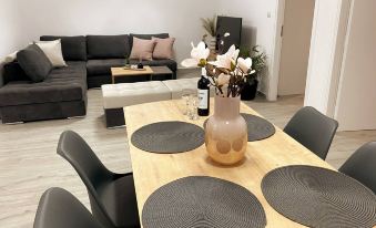 에어컨이 제공되는 이 홀리데이 홈에는 침실 2개, 거실, 냉장고, 커피 머신 등의 시설을 완비한 주방, 샤워 시설, 무료 세면도구 등을 구비한 욕실 1개가 마련되어 있습니다 . 이 홀리데이 홈에는 수건, 침대 린넨 등이 구비되어 있습니다.