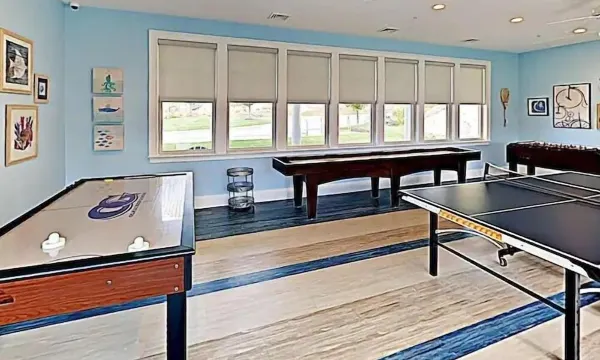 Unwind at our nearby clubhouse, where you can access two outdoor heated swimming pools, lower pool is adult only after 2pm. The clubhouse boasts foosball, ping pong, Air hockey, bocce courts, and horseshoe pits. If you want to work out our state-of-the-art fitness center helps you stick to your workout routine. If you prefer to be outdoors you can enjoy walking around the quiet neighborhoods in our gated community or venture out to hike the Eastern trail. Have fun sitting by the fire pit or the fire bar and enjoy a few cocktails.
