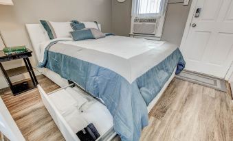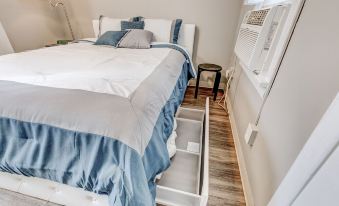 ✮ A comfy queen-sized bed with storage drawers and extra blankets