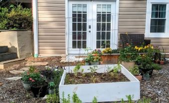 Take in all Asheville has to offer from this comfortable, private-entrance garden suite. Enjoy a loaf of your host's signature sourdough upon check-in, then head out to explore. Your suite is central to all the highlights, including Biltmore & the Parkway, and walking distance to the River Arts District, dining & breweries on Haywood Road, and miles of trails & bike paths along the French Broad River. Back at your suite, pick and enjoy herbs & veggies from the garden. With AC, WiFi, and a cozy living room with a sofa bed, guests can relax and unwind after a day of exploring. This one-bedroom apartment is equipped with all the essentials for a comfortable stay. The perfect urban oasis!