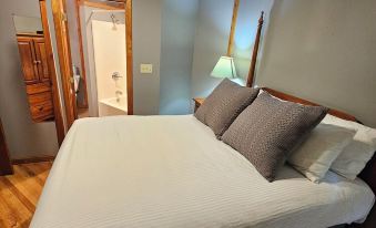 The other queen sized bedroom with en suite bathroom is located on main level of the cabin.