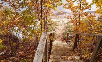 Find yourself staying at a true beach house on Madeline Island. This property is new for 2020 and has its own sandy beach. Walk out the door with your beach towel, beverages and snacks. You are right there. Need to restock your supplies walk up the 12 steps and get what you need. This property has spectacular views of barrier beach (the State and Town parks) and Michigan. Bring your paddle-board, kayak or water toys (that you can carry to the beach). Spend your days just lounging and letting go of the stress of city life.