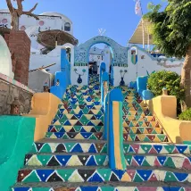 누비아 마을 한가운데에 위치한 이 호텔은 아스완에 온 대부분의 관광객이 보게 될 세련된 리조트와 크루즈 선박과는 매우 다릅니다. 이 지역에는 향신료, 차, 보석을 살 수 있는 시장이 있습니다. 이곳의 미학과 분위기는 밝고 화려하며, 사람들은 매우 친절하고 낙타도 많습니다. 누비아 팰리스는 호텔일 뿐만 아니라 커피숍과 레스토랑이기도 합니다. 음식이 정말 맛있습니다! 그들은 심지어 이른 아침 항공편을 위해 아침 식사 상자를 포장해 주었습니다.