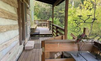 Enjoy your getaway in a peaceful setting in this unique cabin built in 1840 with built addition, walk-around porch and deck. WiFi!! 3 streams surround the property with multiple walkway bridges to access the ample yard. Natural fire-pit with everything you need to enjoy a cozy fire (firewood provided). 4 bedrooms with sleeping space for at least 4 people (Queen bed, bunk beds, 3 futons, full cot). 2 full bathrooms, plus an exercise/yoga/meditation room stocked with free-weights, fitness dvds, mini fridge, and essential oils.
