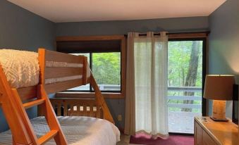 You will have access to the entire home. The main level has the kitchen and dining space as well as the den/family room with games for all to enjoy as well as a tv. There is a private queen bedroom downstairs as well as another private room with a bunk (full on bottom, twin on top). A full bath is shared by everyone downstairs. Up the first stairs is a cubby space that can be accessed by a ladder for the young ones in the group (not suitable for toddlers). Up the rest of the stairs you will find a loft space with a twin bed and a twin trundle. This space also has a desk and chair for remote work. Next to the lofted space is the master bedroom. It has a queen bed, full bath shared by all upstairs, and a balcony.