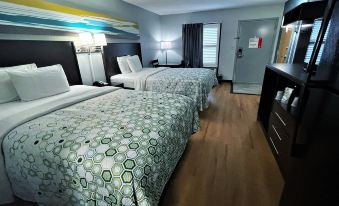 Worst hotel experience we’ve ever had. One bed was broken with the box spring shoved underneath. The bedding was wrinkled, stained, and clearly unwashed. Roaches were crawling in the room. There was a bottle of lubricant in the nightstand drawer. The towel rack was ripped off the wall. Unsafe area with suspicious activity in the parking lot. We were forced to stay a few hours due to exhaustion and had to throw away our luggage afterward. Disgusting. DO NOT STAY HERE.