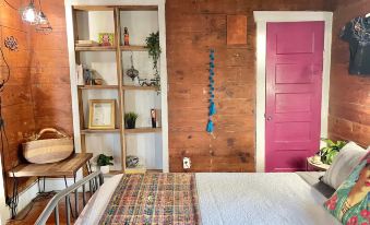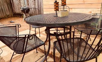 You will enter into the living room. Our cushy couch will beg you to rest. Our smart TV is a Samsung Frame TV with art when it is resting. The bedroom is off the living room with a comfy queen bed and a desk for working. Also off the living room is the full bathroom with an antique tub and a shower. The kitchen has everything you may need to cook a meal and a small dining for an intimate meal. The small fenced back yard is large enough for a table, squirrels, and maybe even a stray cat. This is also where you will find the two bikes for exploring.
