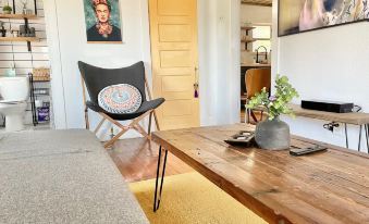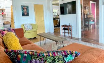 This unique bungalow with a Frida flair is set in Austin's East Side. Walkable to some of the coolest restaurants, grocery store, and liquor shop, you will love love love the location. The house is curated for sweet comfort and everything a traveler might need.