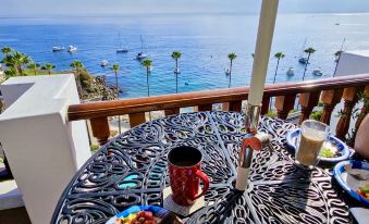 Welcome to your Avalon hillside escape - a cozy retreat where ocean views & thoughtful amenities create a relaxing stay: