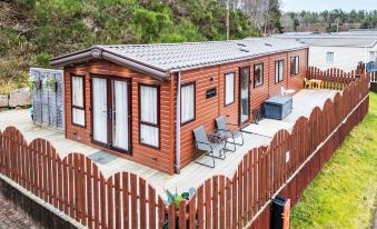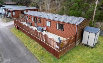Cosy, comfortable chalet "Cairn View", detached. 1.4 km from the centre of Aviemore, in a central position, 15 km from the lake, 16 km from the skiing area. Private: terrace, garden furniture, barbecue, parking (for 2 cars) at the house. Shop 1 km, grocery 1 km, supermarket 1 km, restaurant 1 km, bus stop "Aviemore Train station bus stop" 950 m. Slopes 16 km. Nearby attractions: Cairngorm National Park, Highland Wildlife Park 15 km, Inverness 48 km, Landmark Forest Adventure Park 9 km, Highland Folk Museum 27 km. Well-known ski regions can easily be reached: Cairngorm Mountain 18 km, Lecht Ski Centre 54 km. Well-known lakes can easily be reached: Loch Morlich 15 km, Loch Garten 14 km, Loch Ness 69 km. Please note: car recommended. 3-room chalet. Open living/dining room with dining table and TV. Exit to the terrace. 1 double bedroom with 1 double bed and shower/WC. 1 small children's room with 2 beds. Open kitchen (dishwasher, toaster, kettle, microwave, freezer, grill). Shower/WC. Heating. Small terrace. Terrace furniture, barbecue. Facilities: children's high chair. Please note: non-smoking house. TV only EN.