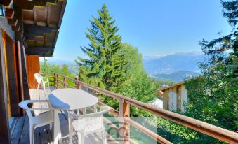 Chalet "Clarine". In the resort 600 m from the centre of Anzère, in a quiet, sunny position. In the house: central heating system. Motor access to 150 m from the house. 150 m footpath (20 steps) to the house. Parking. Shop, restaurant 450 m, bus stop "Anzère village sud" 250 m, outdoor swimming pool 450 m, thermal baths "Anzère Spa & Wellness" 450 m. Cable car 800 m. 4-room chalet 120 m2 on 2 levels. Cosy furnishings: living/dining room with open-hearth fireplace, cable TV and radio. Exit to the garden, to the terrace. Kitchen (oven, dishwasher, microwave). Sep. WC. On the lower ground floor: 1 room with 1 bed and 1 double bed. 1 room with 1 bed and 1 x 2 bunk beds. 1 room with 1 double bed. 2 showers/WC. Balcony, south facing position. Terrace furniture. Beautiful view of the mountains. Please note: non-smokers only. Maximum 1 pet/ dog allowed.