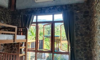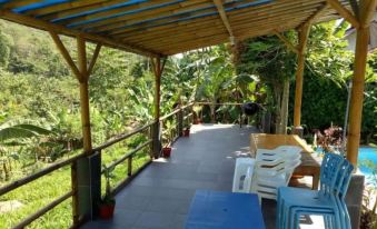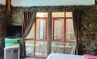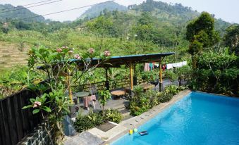 Unique hot spring stone villa just over 1 hour from Jakarta and 5KM into the beautiful mountains from Jungleland Sentul. The price set up for 6 people (and more upto 15 people, condition apply) has full size swimming pool, 2 hot mountain pool spa, gazebo(for sholat and such), and barbeque, fully equipt kitchen, 2 toilet. The villa has mountain, padi, and stream views. It is a private vila and there is only 1 vila. Many hiking and bicycle trails are in the area and Gunung Pancar National Park is only 2KM away.