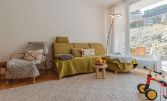 Cozy apartment. But it lacked a lot of kitchen items and light in the kitchen, there is no washing machine and dryer as was written in the papers, the lamp in the bedroom is much too big, the sofa bed is not optimal to sleep in.