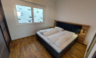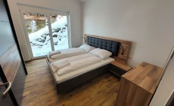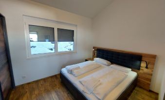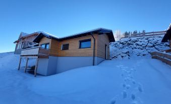 Very modern chalet "Diamondsky", 1'600 m a.s.l., detached, built in 2022, surrounded by meadows. In the district of Kliening, in a quiet, sunny position on a slope, 400 m from the skiing area, in a cul-de-sac. Private: natural state property. In the house: with TV, WiFi, hot tub, central heating system, washing machine, tumble dryer. Bumpy motor access to the grounds (via unmade road). In Winter: please take snow chains. Stepped path (30 steps) to the house. Parking (for 2 cars). Grocery 15 km, restaurant 1 km, bus stop "Bad St. Leonhard Moosweg (West)" 15.2 km, lake Längssee 35 km. Walking paths from the house 5 m, chair lift 450 m, slopes, ski rental 200 m. Nearby attractions: Sommerrodelbahn Klippitztörl 2 km, Klettergarten 2 km. Well-known lakes can easily be reached: Längssee 35 km, Klopeinersee 60 km. Hiking paths: Koralm, Saualm, Lavantaler Alpen. Please note: car recommended. In case of good snow conditions, the house is accessible on skis. Self-service machine for food and everyday necessities in 500m. Due to the geographical location on the mountain, Internet reception cannot be guaranteed continuously and is heavily dependent on the weather. 4-room chalet 100 m2. Object suitable for 6 adults. Spacious and bright, modern and tasteful furnishings: entrance hall with separate WC. Open large living/dining room with international TV channels. Exit to the terrace. 1 double bedroom 15 m2. Exit to the terrace. 2 double bedrooms 15 m2 with bathroom, hand-basin, hydro massage bath and electric heating. Exit to the terrace. Open kitchen (toaster, kettle, grill, electric coffee machine). Marvellous distant view of the mountains. Facilities: washing machine, dryer. Internet (WiFi, free). Parking (3 cars) at 20 m. Please note: suitable for families. Non-smokers only. Fire extinguisher. Due to the geographic location, continuous internet access cannot be guaranteed.