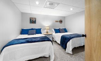 First Floor: Bedroom 1: Queen Bed, Bedroom 2: Queen Bed, Living Room: Full sized Sleeper Sofa, Full Bathroom (shower only)
