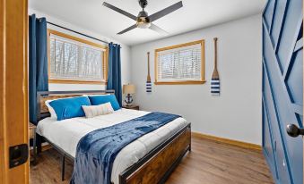The home features excellent entertainment options: an electric fireplace, large garage, Wi-Fi, smart TV’s (with access to free tv and movies through vizio+ as well as Amazon prime), a mini fooseball table, an airhockey table, a game cabinet, an outdoor fire ring that overlooks the lake (firewood not included), a picnic table that seats 8-10, 2 kayaks and a 2 person row boat! We now have a small, floating, swim up docking platform at the property (not accessible by land)! Perfect for laying out or fishing!