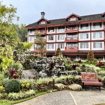 바기오 최고의 호텔, 바 없음. 방에는 에어컨이 필요 없기 때문에 밤에는 추우므로 이불을 덮어야 하며 온도는 16~19도 정도입니다. 레스토랑 뷔페가 꽤 괜찮네요. 비거주 손님도 많이 오시니, 예약을 먼저 하셔야 가성비가 좋습니다.