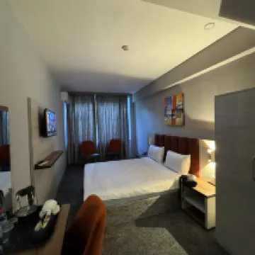 택시 기사가 말했듯이 호텔이 아니라 모텔이었어요. 방은 정말 넓었지만 낡은 냄새가 나서 더러웠어요. 침실에는 머리카락이 잔뜩 붙어 있어서 정말 무서웠어요. 환승편이라 두어 시간만 머물러야 했기 때문에... 참고로, 방에는 와이파이가 없었어요. 리셉션 직원분은 친절하셔서 택시를 잡아주셨어요.