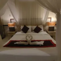 빌라는 시내와 거리가 꽤 있어서 그랩으로 택시를 타면 꽤 비싼 편이고, 빌라 호텔은 도심까지 셔틀 서비스를 제공하는데 그랩보다 50만동이 저렴하다. 주변에 상점이 많지 않지만 가장 가까운 빈탕 호텔은 비용 효율적이며 때로는 라이브 밴드 연주가 있는데 품질이 상당히 좋습니다. 호텔방은 매우 깨끗하고 잘 정돈되어 있지만, 에어컨 소리가 조금 큽니다. 유일한 단점은 도마뱀🦎이 매일 들어와서 똥을 싸는데, 요청하면 웨이터가 와서 청소해 준다는 점이에요. 호텔 아침 식사는 하루 전에 주문해야하며 여러 가지 세트 메뉴 중에서 선택할 수 있으며 빌라 정원에서도 먹을 수 있으며 조금 단순하고 뷔페와 비교할 수 없습니다. 전체적으로 3박 숙박에 매우 만족했습니다.