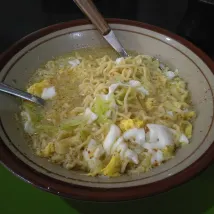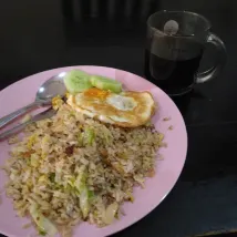 아침 식사는 20,000 루피아에서 여러 종류 중에서 선택했습니다.